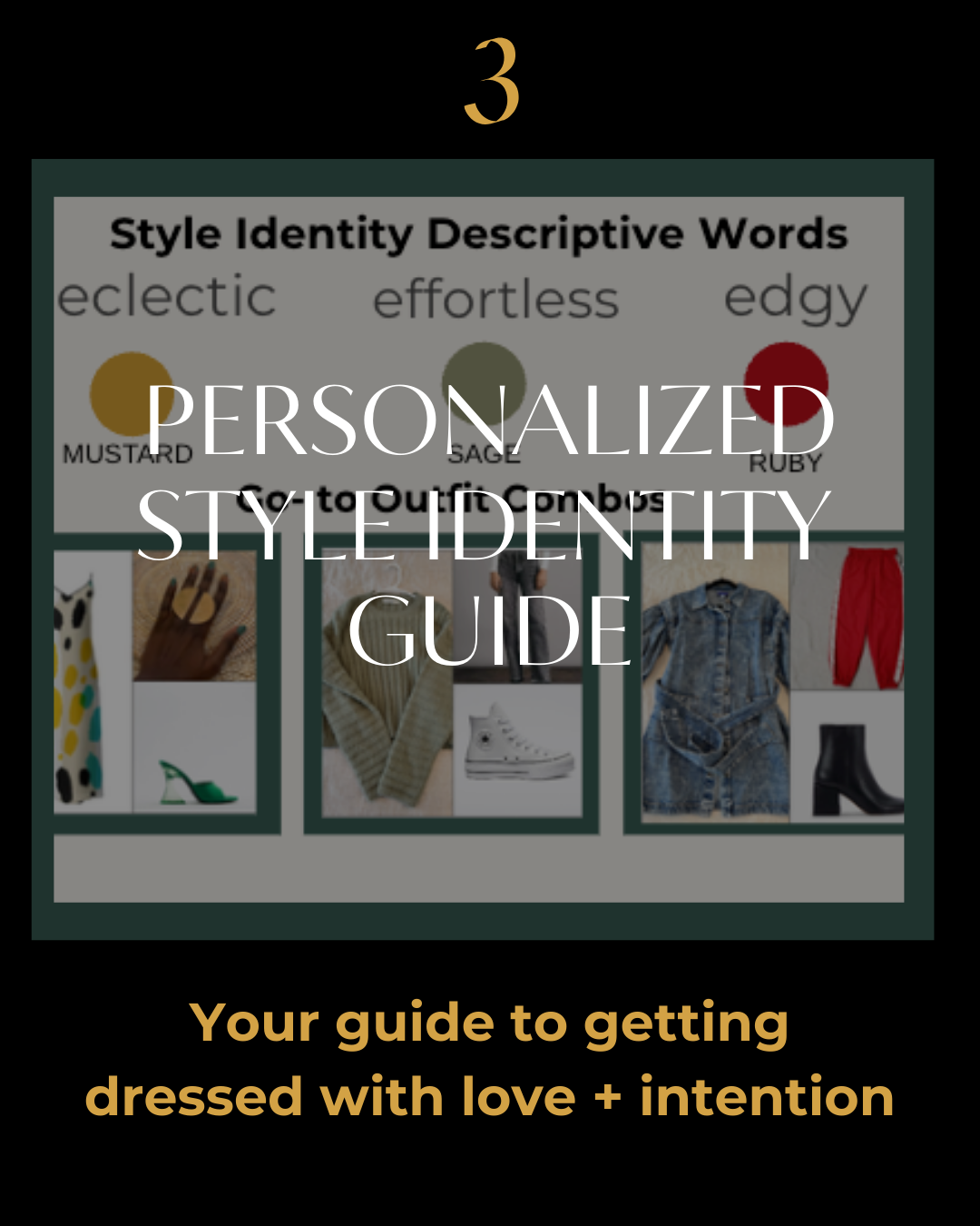 ✨ Step 3: Receive your style identity guide. Within 7 days of your style identity session you will be sent your personalized I AMM Style guide you can reference everyday as you get dressed for work, life, events, and the new spaces you're stepping into.
